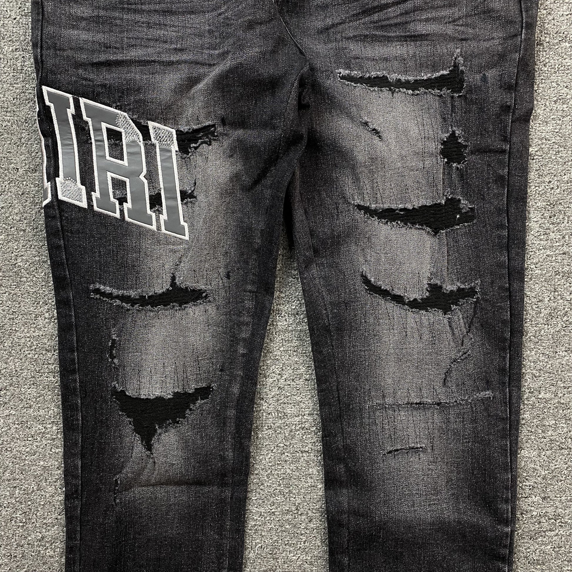 The AMIRI VARSITY LOGO REPAIR JEANS - REPLICA combine rockstar edge with high-fashion craftsmanship, making them a must-have for those who embrace bold streetwear aesthetics. Crafted from premium denim, these jeans feature signature distressing, reinforced patchwork, and Amiri’s iconic varsity-style logo, creating a unique fusion of luxury and rebellion.