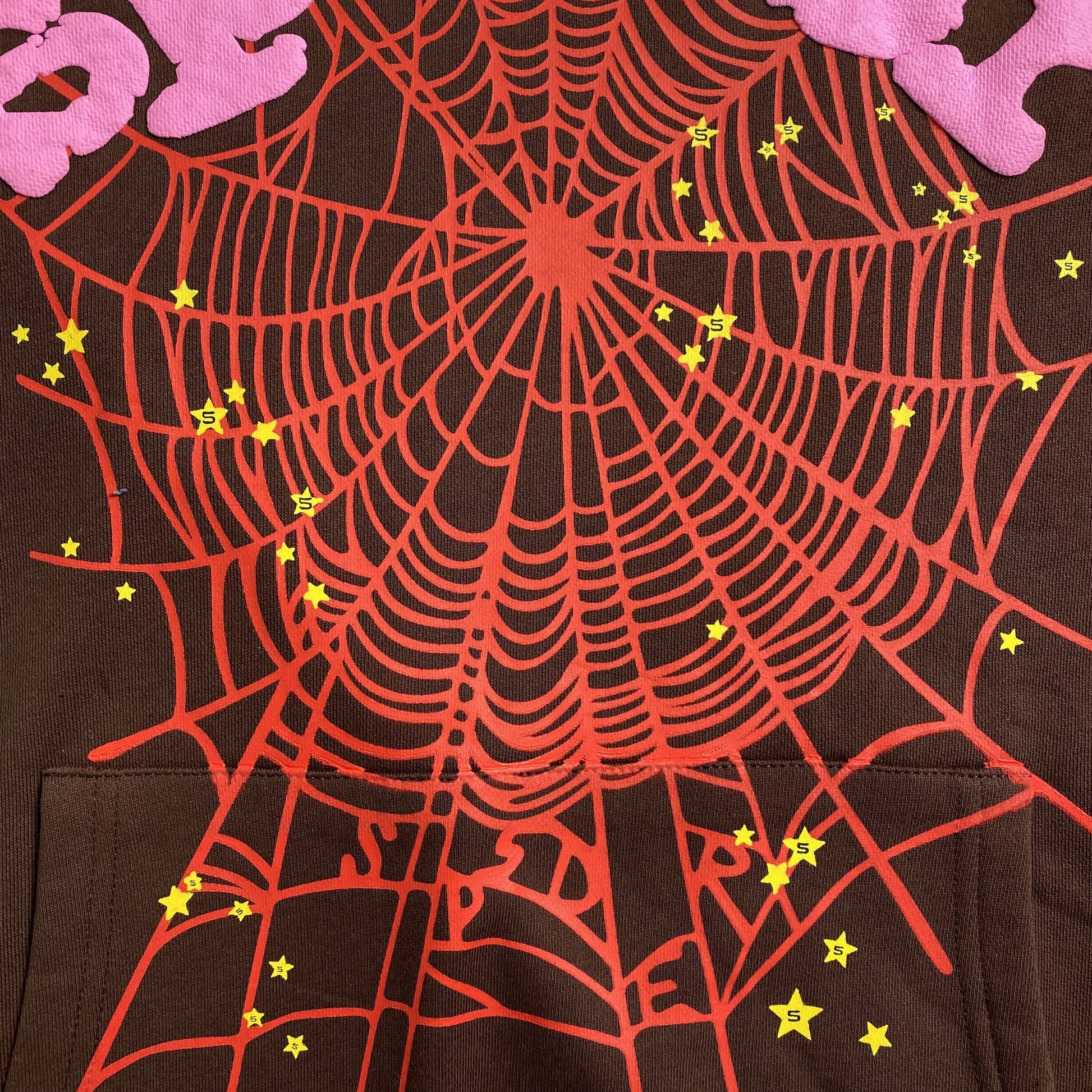 Featuring the iconic SP5DER web-inspired graphic and branding on a rich brown base, this hoodie exudes modern streetwear aesthetics with a unique twist. Complete with a cozy hood and ribbed cuffs, it delivers both practicality and edgy style.