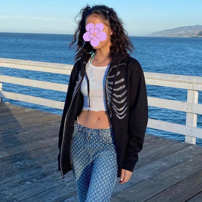 Step into edgy elegance with our Bones Zip-Up Hoodie. This isn't just a hoodie; it's a fashion statement that embodies your unique style. Embrace the boldness and elevate your look with this distinctive piece designed for modern women who dare to stand out